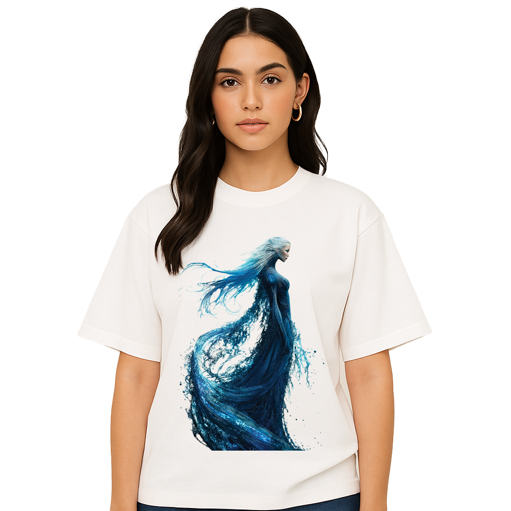 Embrace your ethereal side with the Didachee Aquarius Goddess Flow Pro Club inspired T-shirt. Oversized and heavyweight, this piece showcases a graceful water goddess design that embodies the free spirit of Aquarius.
