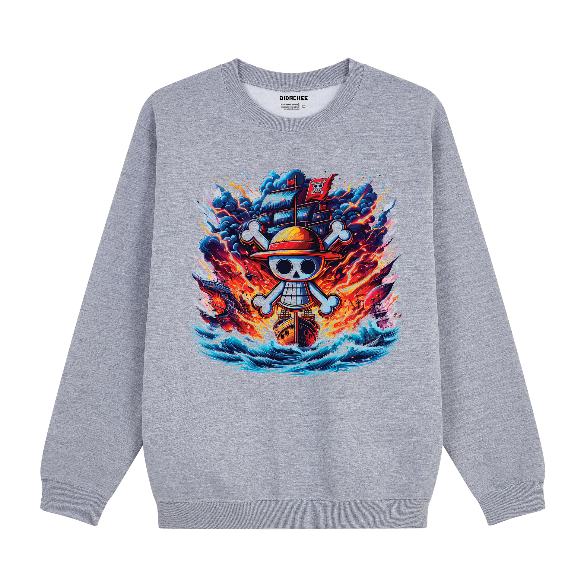Anime Pirate Ship Jolly Roger Flames Sweatshirt - Unisex